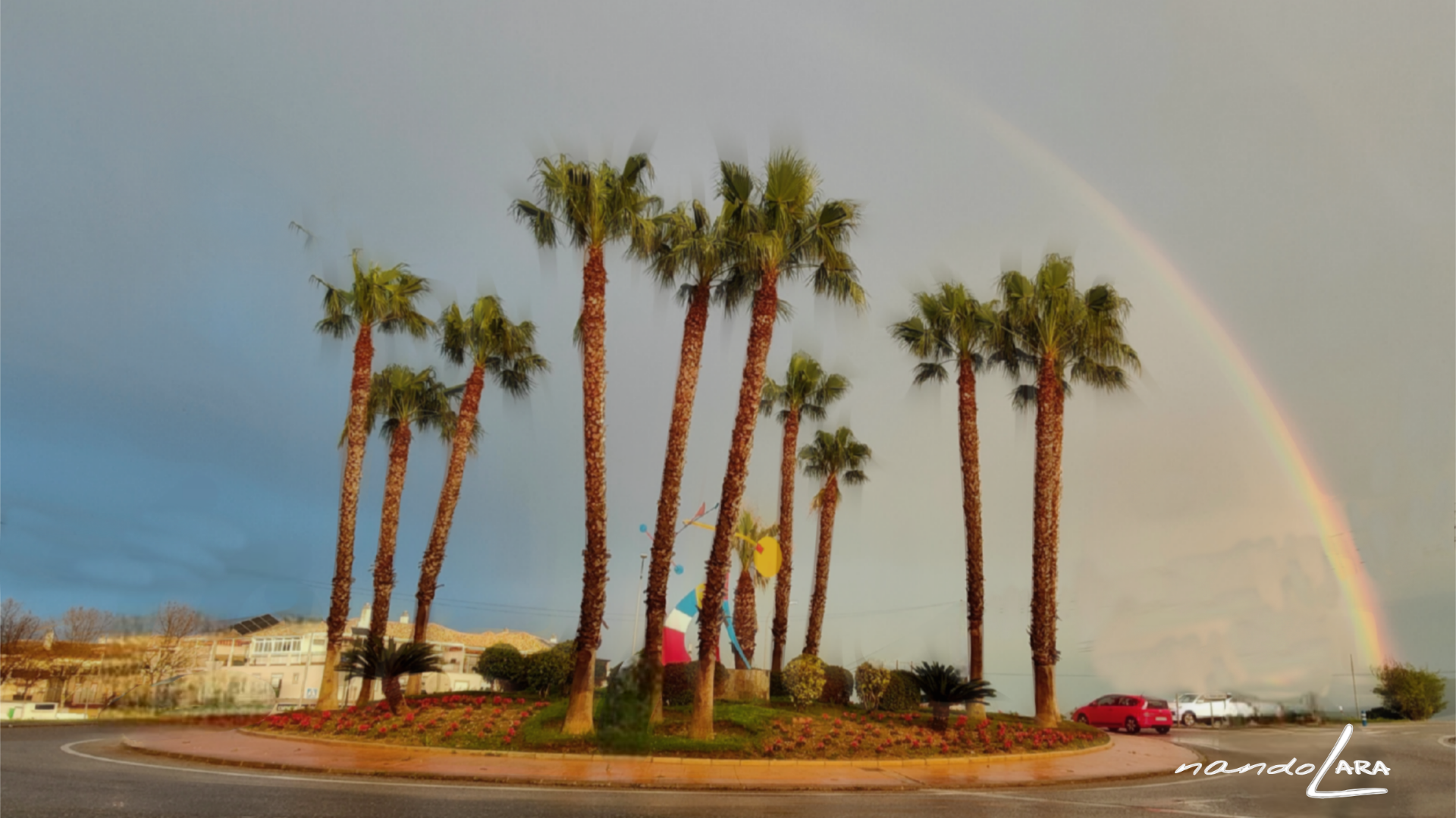 No uno tímido, sino uno rotundo, entero, casi insolente. Un puente de colores clavado en el horizonte como si alguien hubiera decidido que la tarde merecía redención.